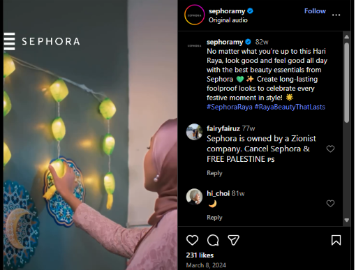 Another great example of how social listening produces success is Sephora Malaysia’s “Be Kind, Be Beautiful” campaign for the 2023 Hari Raya period. The campaign included commemorating beauty and kindness during Hari Raya, and Sephora employed social listening to make it culturally and emotionally reach its target audience.